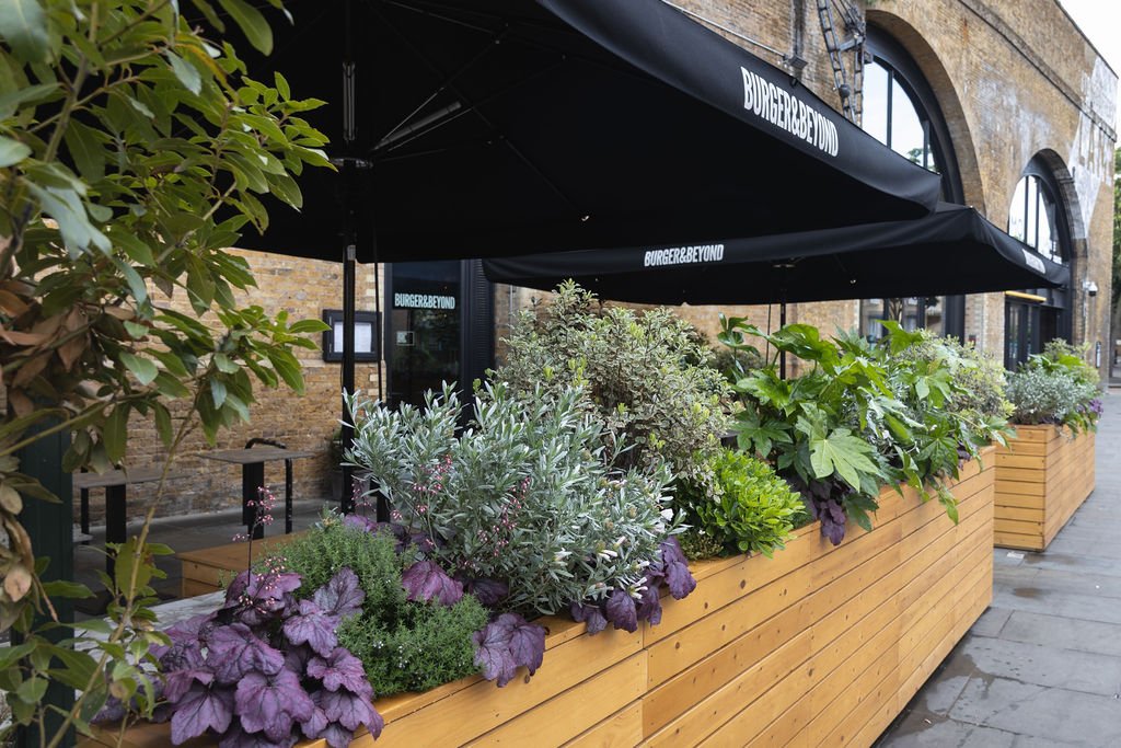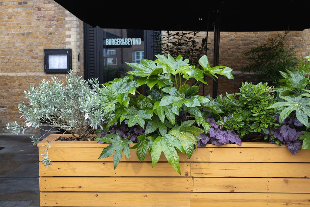 Shoots collaborated with Burger & Beyond at their Borough Yards location, set against the historic backdrop of London’s South Bank. We worked closely with the team to elevate the exterior dining environment through a bespoke planting scheme, that reflects the brands refined yet bold aesthetic. Layered textures, rich tones, and sculptural greenery bring depth and sophistication to the space. An inviting retreat that has drawn consistent praise from local residents and neighbouring businesses.