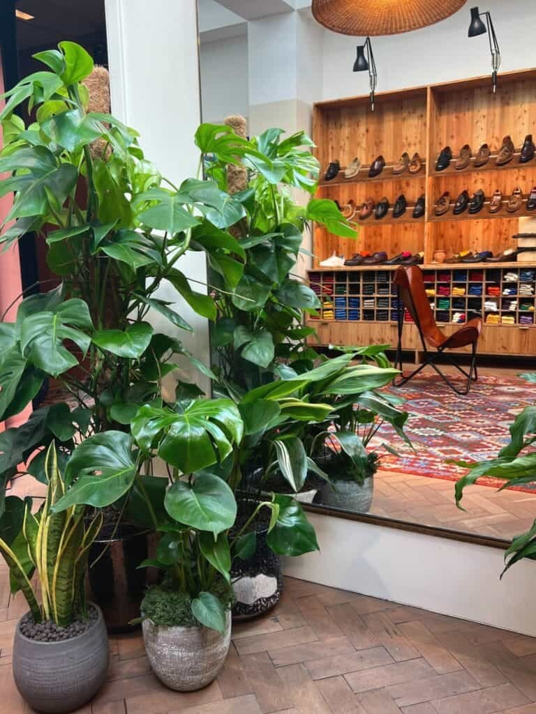 In 2021, Shoots collaborated with iconic British tailoring brand Drakes to design and install a bespoke planting scheme in their flagship retail location on Savile Row, the heart of luxury tailoring. The planting design was carefully curated to complement Drakes’ sophisticated store aesthetics, adding a touch of nature that feels as tailored as their suits. Each plant was thoughtfully chosen to complement specific areas throughout the space, elevating the overall shopping experience and adding a fresh dimension to the Drakes brand.